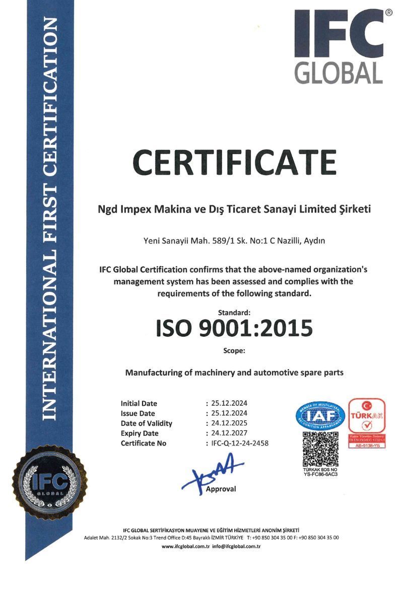 "NGD IMPEX carries out all production processes meticulously in accordance with TÜRKAK accredited ISO 9001:2015 quality management system standards, guarantees quality at every stage and ships its products in accordance with the determined standards. With our motto 'Together We Are the Best', we achieve excellence in cooperation with our customers and suppliers We aim."